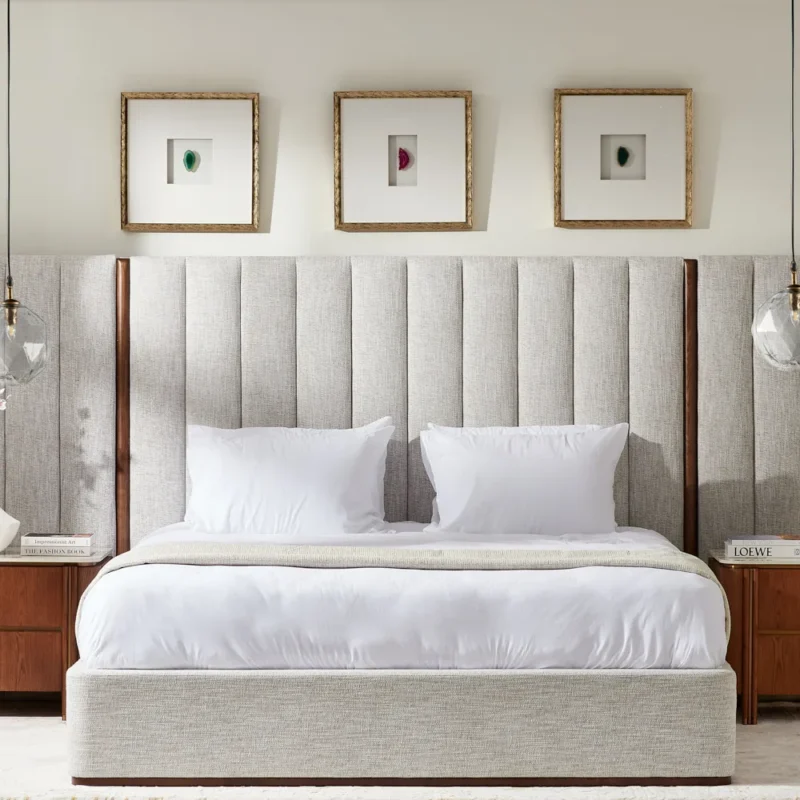 Its thoughtful proportions allow for a spacious feel, while the low-profile base enhances its visual appeal. This fusion of modern design and comfort makes the Arcadia bed a timeless addition to any bedroom.