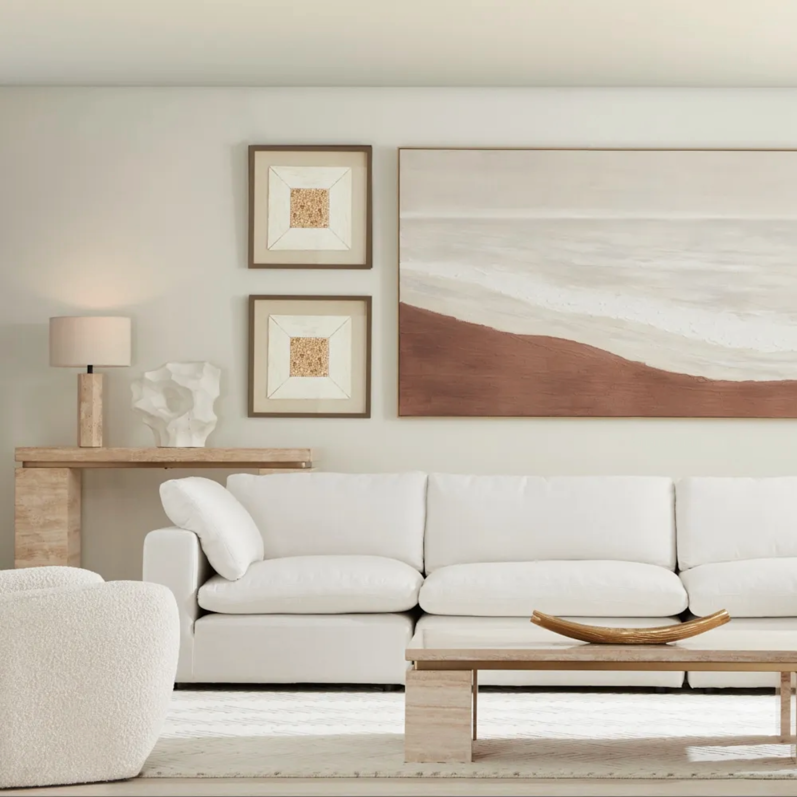 The Elora II Sofa in Arctic White blends deep comfort with clean design. Its generous cushions and low, structured frame create an inviting silhouette that feels both relaxed and composed.
