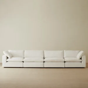 The Macie 5 Piece Modular Corner Sofa blends modern comfort with versatile design in a clean, cohesive form. Upholstered in chiffon white fabric, it introduces a soft, airy feel to your living space.