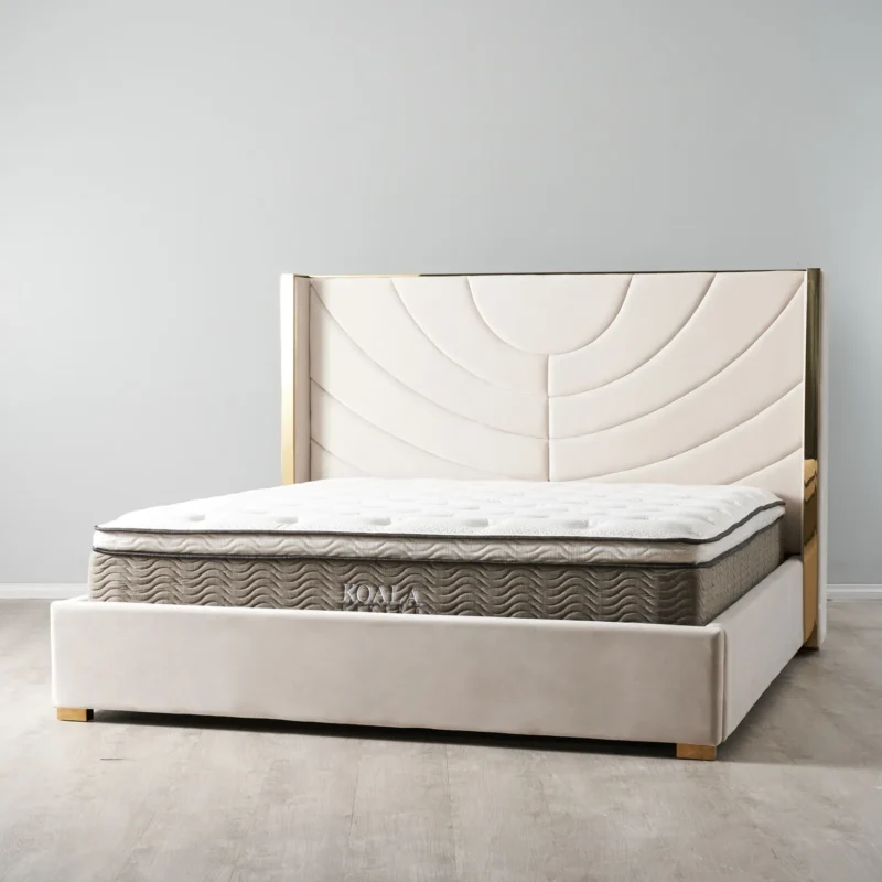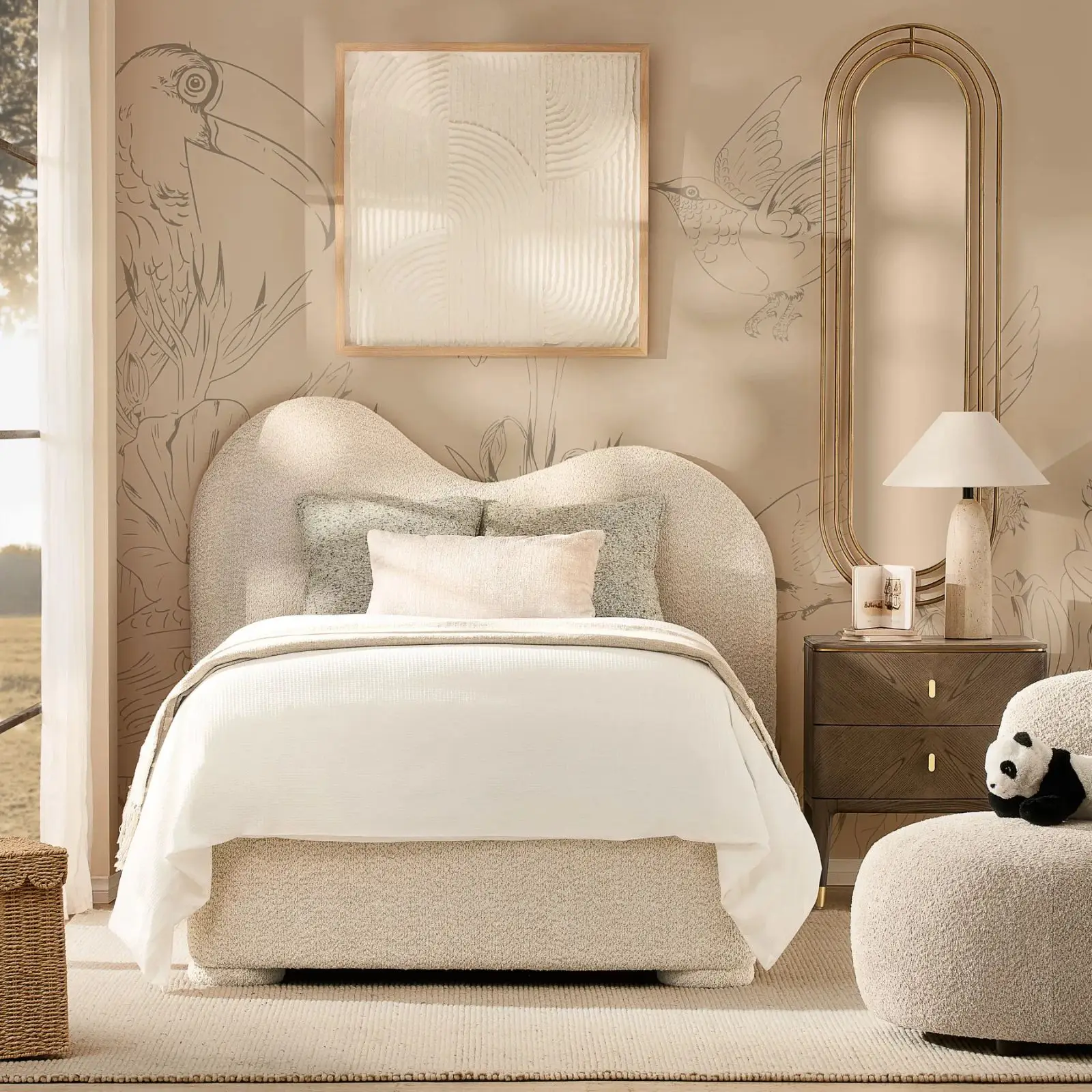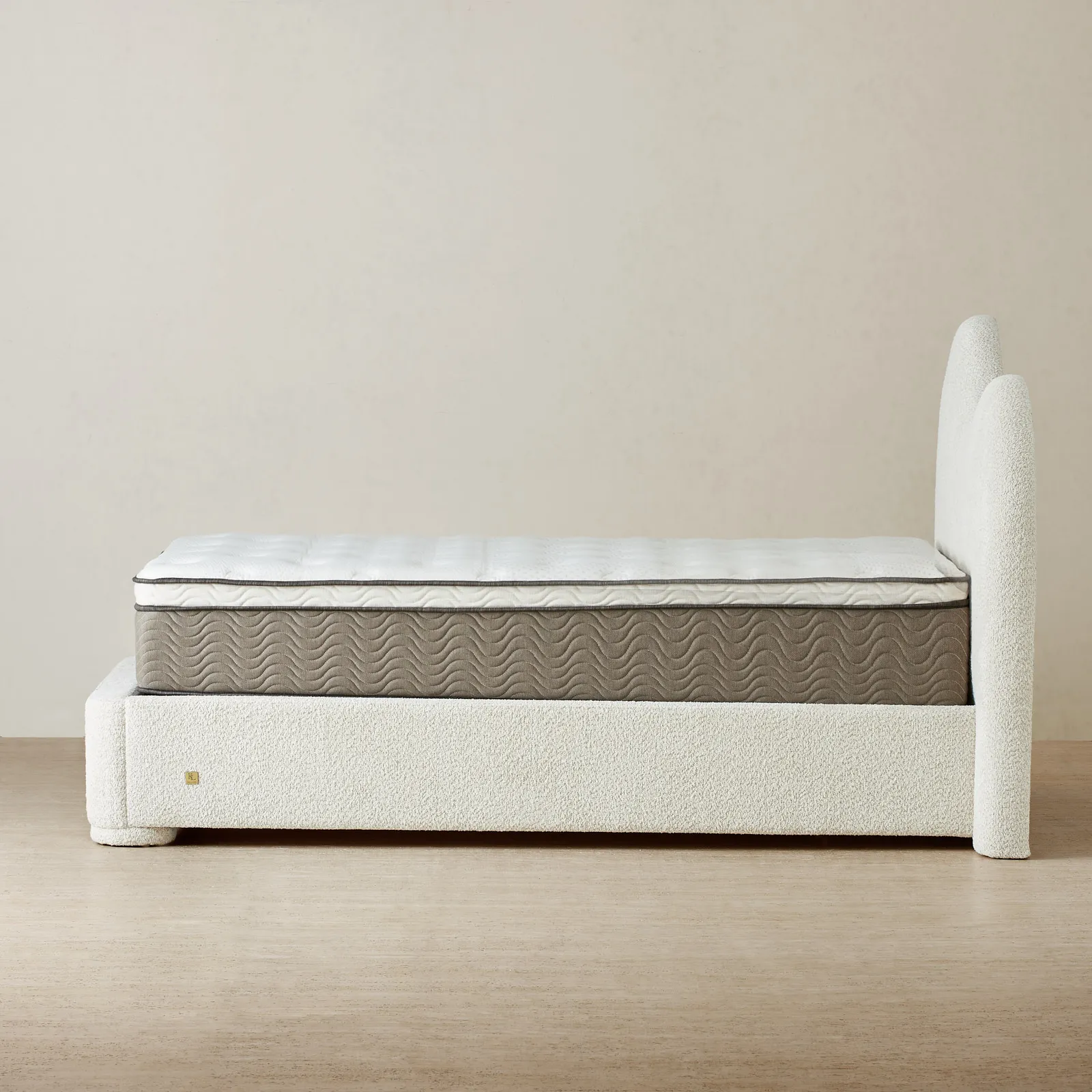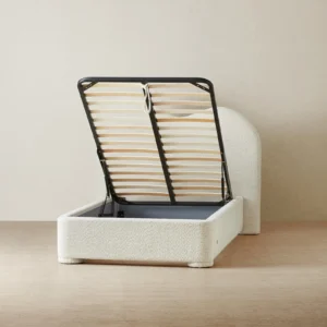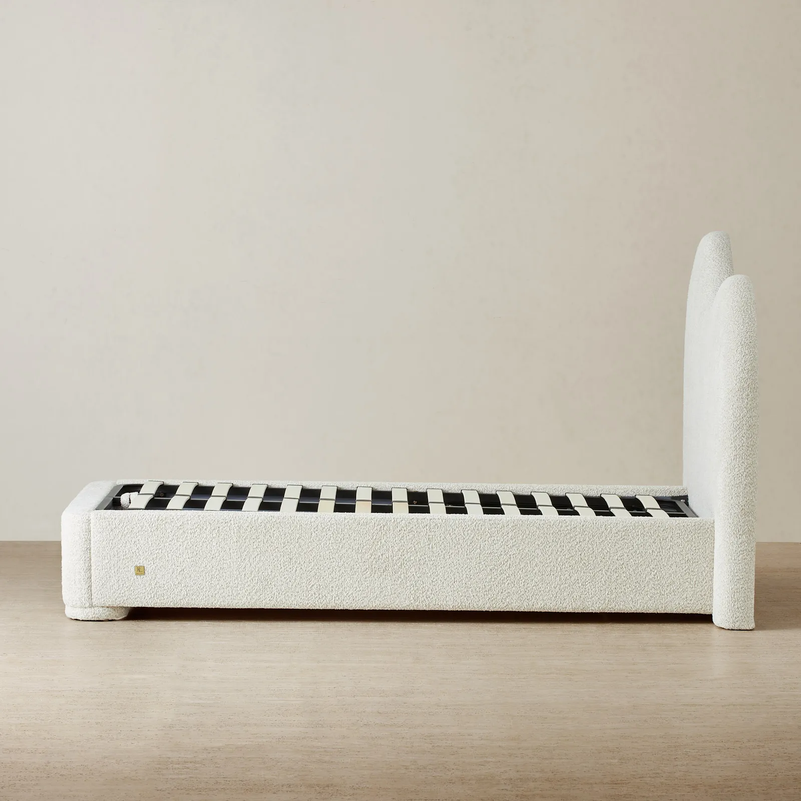 Its low frame and rounded edges create a grounded, balanced silhouette. Designed with intention, it brings a sense of calm and quiet luxury to the bedroom.